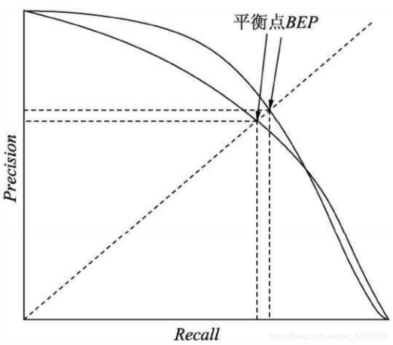 采用平衡点来衡量,令每个分类模型的召回率与精准率相等即为该模型的 BEP,BEP 越大,则模型的性能越好