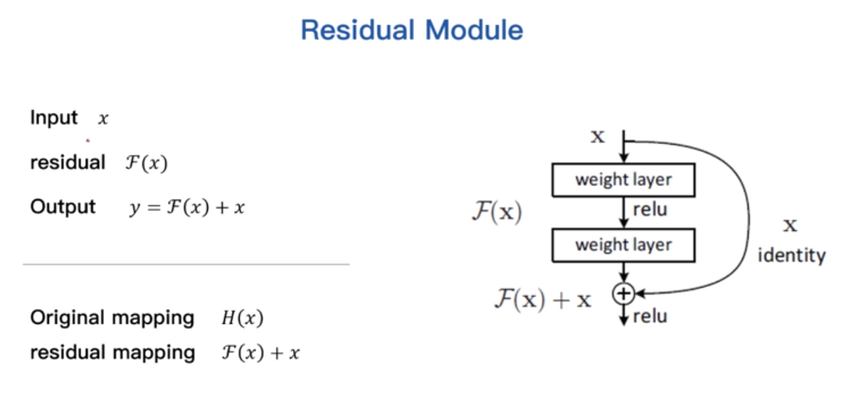 残差块:F(x)就是残差,整个网络被称为残差网络