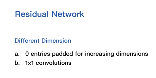 在网络结构过程中block会出现维度不一样的情况,可以用两种方法(具体可以查看完整的网络结构图)
