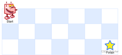 机器人每次只能向下或者向右移动一步。机器人试图达到网格的右下角(在下图中标记为 “Finish” )。