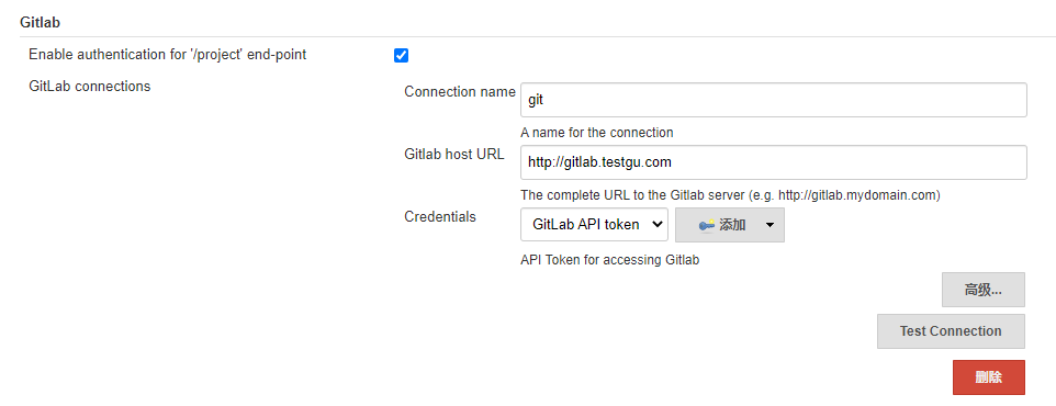 “Manage Jenkins” -> "Configure System" -> "GitLab"