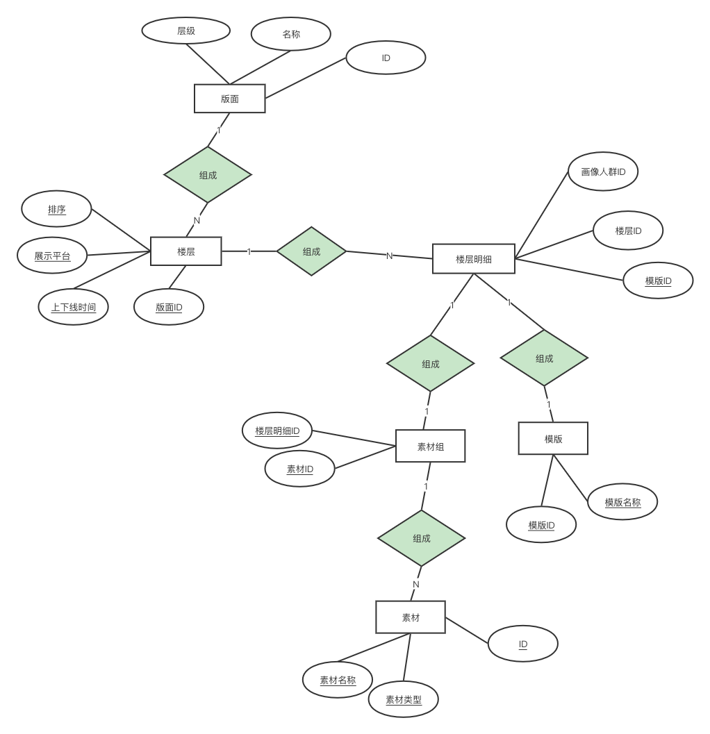 需求原子单位是素材,多个素材组成模版,一个模版填充一个楼层,多个楼层组成版面,一个完整的版面构成如下: