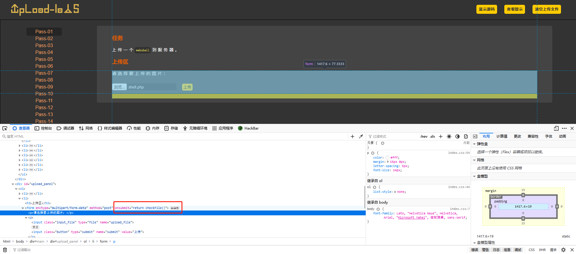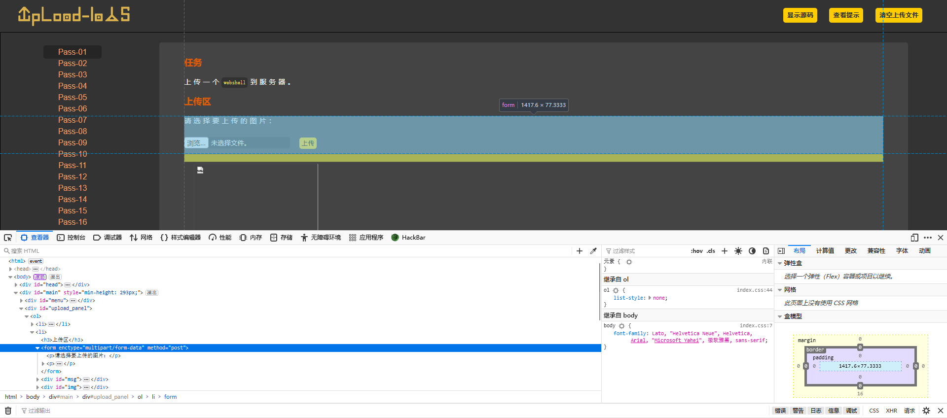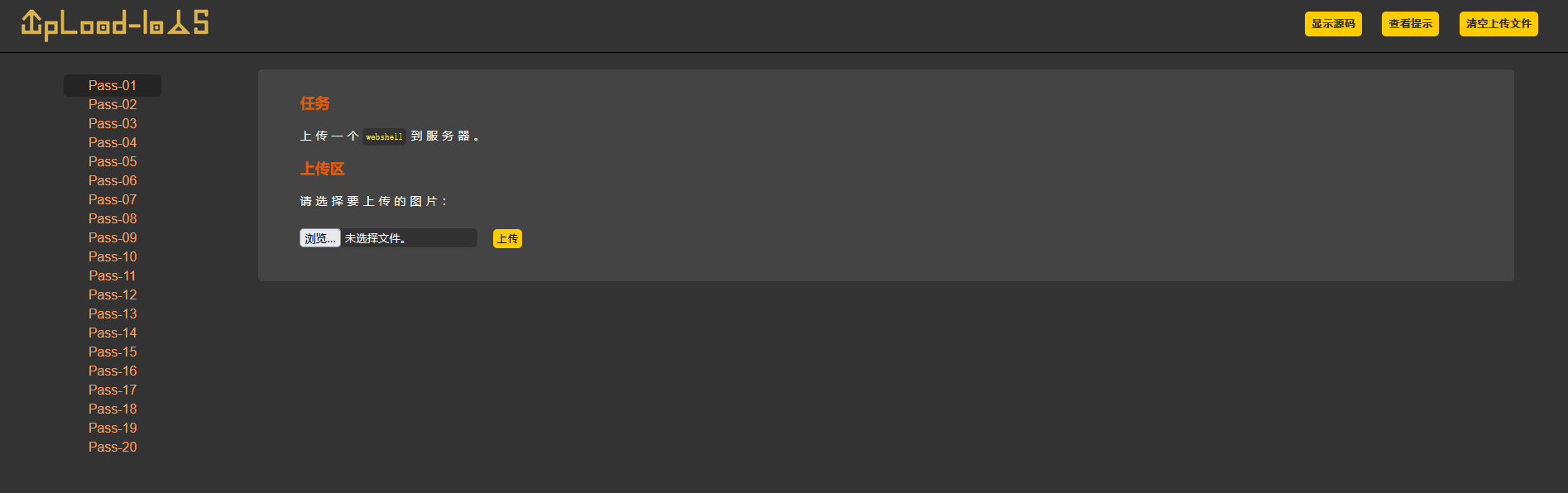 打开靶场第一关,可以看到文件上传的组件