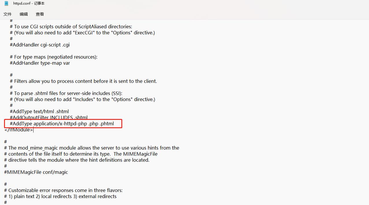 接下来我们打开phpstudy,点击“其他选项菜单”、“打开配置文件”、“httpd-conf”,在文件中取消注释,并在行尾添加“.php5”