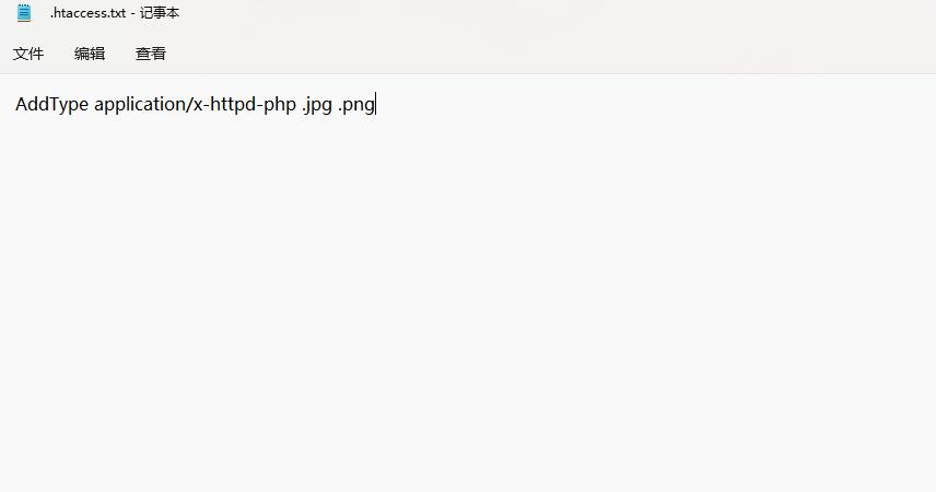 接下来我们创建一个.htaccess文件并写入配置,该配置文件的意思是将.jpg .png 后缀的文件当做php文件来执行