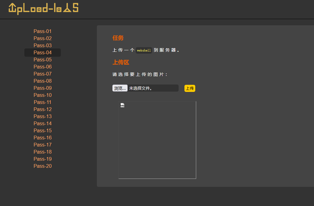 打开第四关,首先尝试上传一句话木马文件,发现提示“此文件不允许上传”