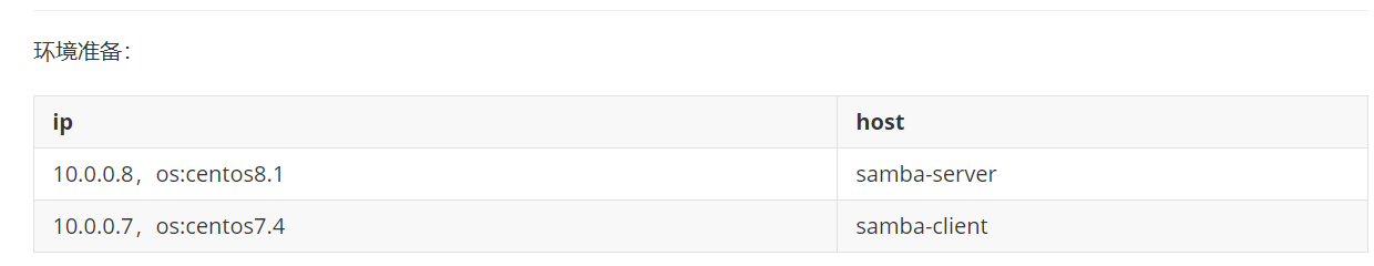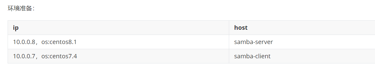 #在samba服务器上安装samba包 yum install -y samba #创建samba用户和用户组 groupadd -r admins useradd -s /sbin/nologin -G admins wang #添加用户到samba服务 smbpasswd -a wang New SMB password: #设置密码 Retype new SMB password: #确认密码 Added user wang. #创建samba共享目录,并设置selinux、关闭防火墙 mkdir /testdir/smbshare -pv chgrp admins /testdir/smbshare chmod 2775 /testdir/smbshare/ #samba服务器配置 vi /etc/samba/smb.conf [share] path = /testdir/smbshare write list = @admins