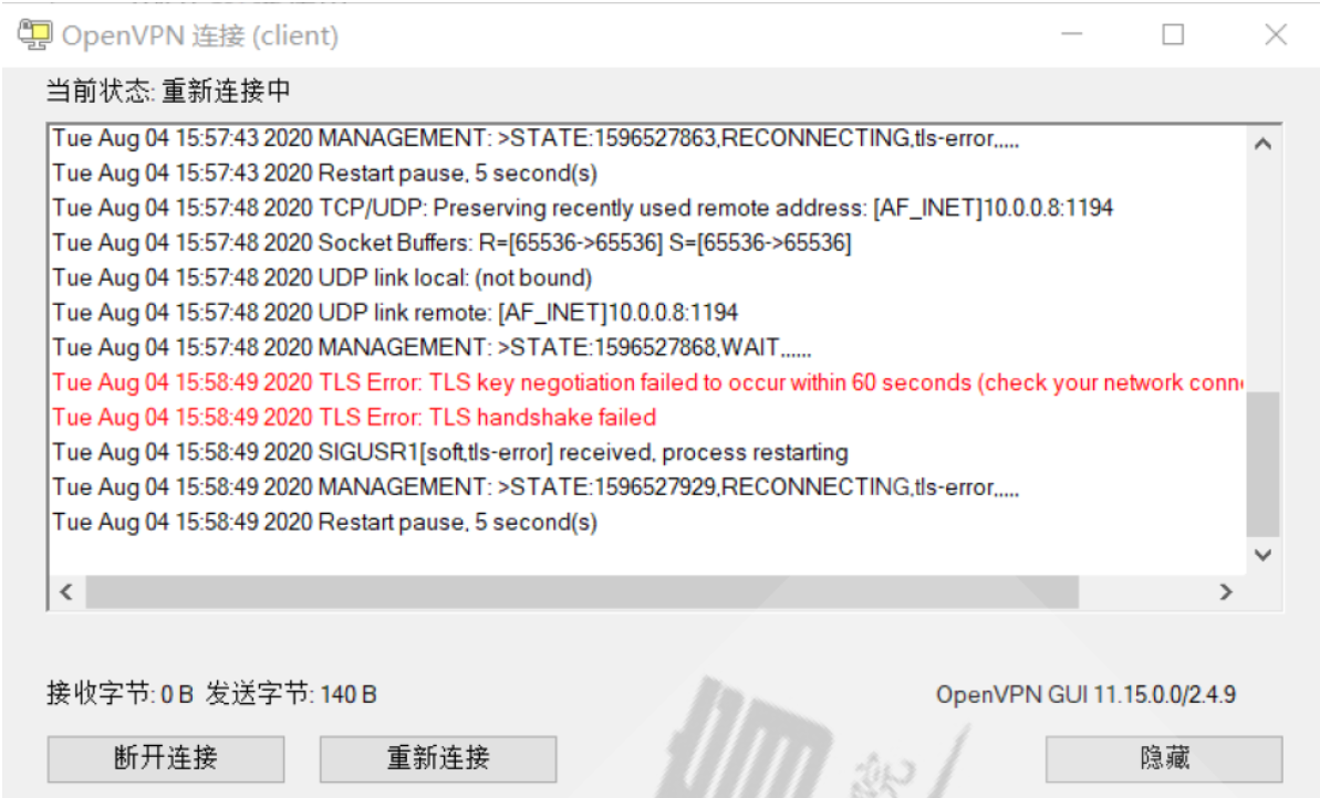 [root@centos8 ~]#openvpn --genkey --secret /etc/openvpn/certs/ta.key [root@centos8 certs]#ll /etc/openvpn/certs total 24 -rw------- 1 root root 1204 Sep 25 16:16 ca.crt -rw------- 1 root root 424 Sep 25 16:16 dh.pem -rw------- 1 root root 4608 Sep 25 16:16 server.crt -rw------- 1 root root 1704 Sep 25 16:16 server.key -rw------- 1 root root 636 Sep 25 16:41 ta.key [root@centos8 ~]#vim /etc/openvpn/server.conf #tls-auth ta.key 0 # This file is secret tls-auth /etc/openvpn/certs/ta.key 0 #客户端为1,服务器端为0 [root@centos8 ~]#systemctl restart openvpn@server.service