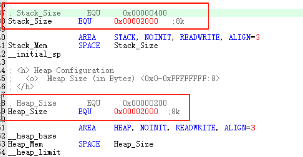 - 启动文件堆栈要修改大小,下图中的8k是能运行的