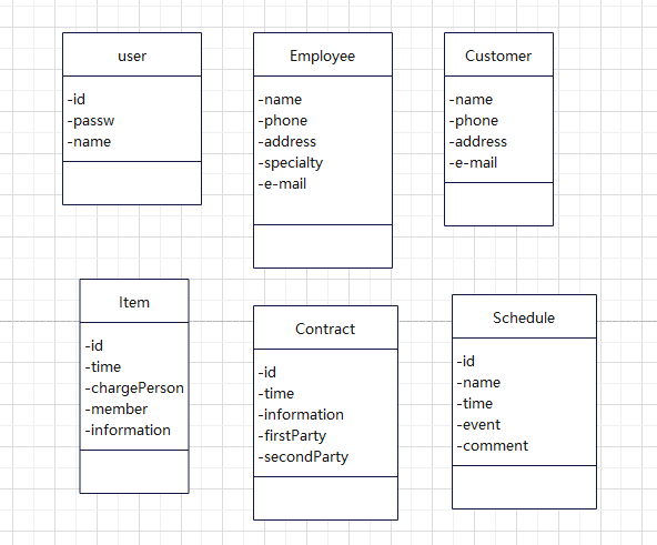 | 5 | 时间表 | 时间表编号 | 自由职业者编号,普通客户编号 | 编号,时间,自由职业者编号,事件 |
