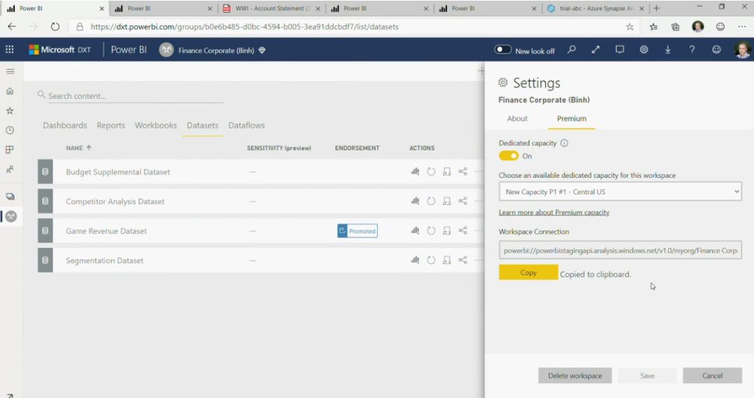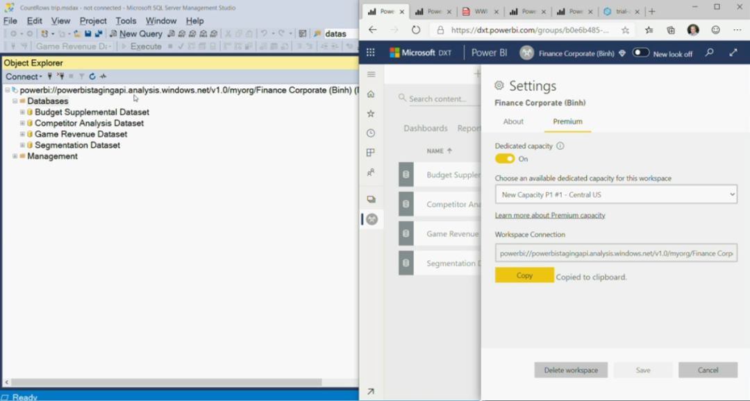 我们可以连接到 Power BI Premium 来进行调试: