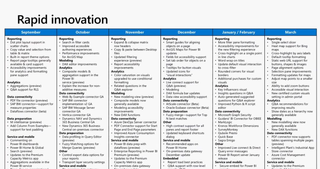 微软虽然是很庞大的组织,在 Power BI 的迭代方面,还是可以的: