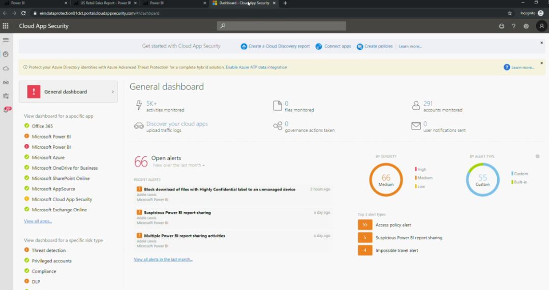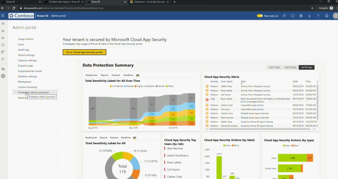 同时,Power BI 管理控制门户会专门给出一个板块来监控整个保护情况: