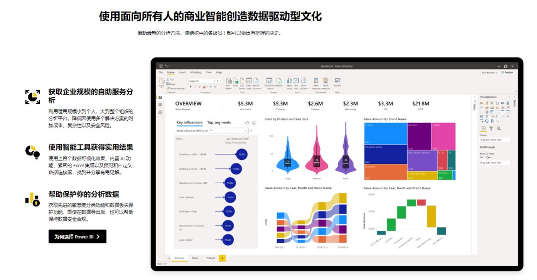 对于个人而言,Power BI 为个人提供了内置 AI 体验的却简单如办公的个人体验。