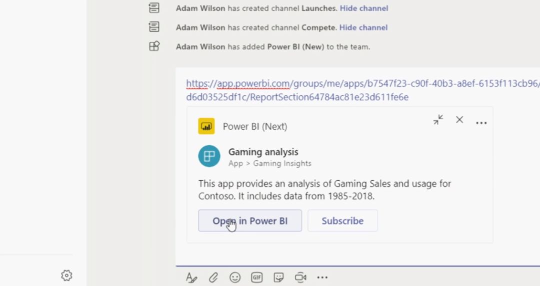 可以将 Power BI 的内容直接挂在 Team 里,这样任何问题就可以监控起来,有问题立即处理,随时随地用数据驱动生产力。