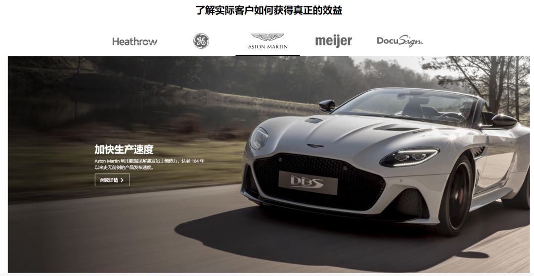 Power BI 企业客户阿斯顿马丁利用 Power BI 激发员工创造力,达到104年来史无前例的产品发布速度。是不是市场小姐姐换了,现在这个靠谱,Power BI 吹起来~~