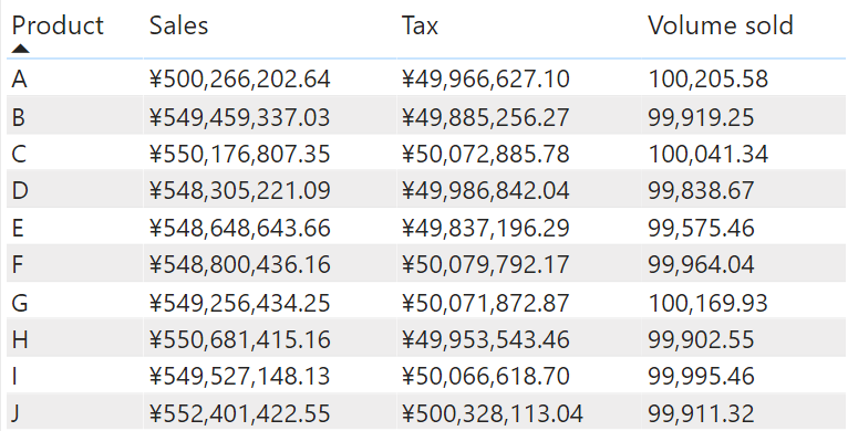 此查询不仅速度较慢,而且现在有两个存储引擎查询:一个用于获取Sales数据,另一个用于获取Tax数据。由于需要单独的检测来获取每个度量值,所以在可视化中的度量值越多,或者计算所需的度量值越多,就需要进行更多的检测。这很快就会造成一个很大的性能问题,尤其是每次检测都比较慢的情况下,这种情况更有可能发生,因为度量维度方法意味着Power BI无法有效压缩数据。
