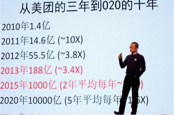 在2013年初,当初美团年GMV只有55.5亿,王兴就抛出了一个千亿和万亿的规划,直逼阿里体量。当初很多人都不相信,简直狂妄至极。