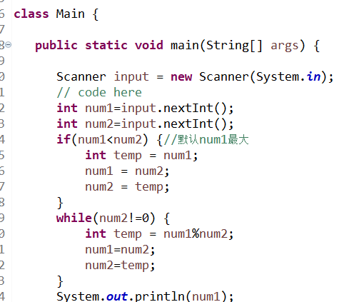 2.用temp=num1%num2;(需要先进行一次)