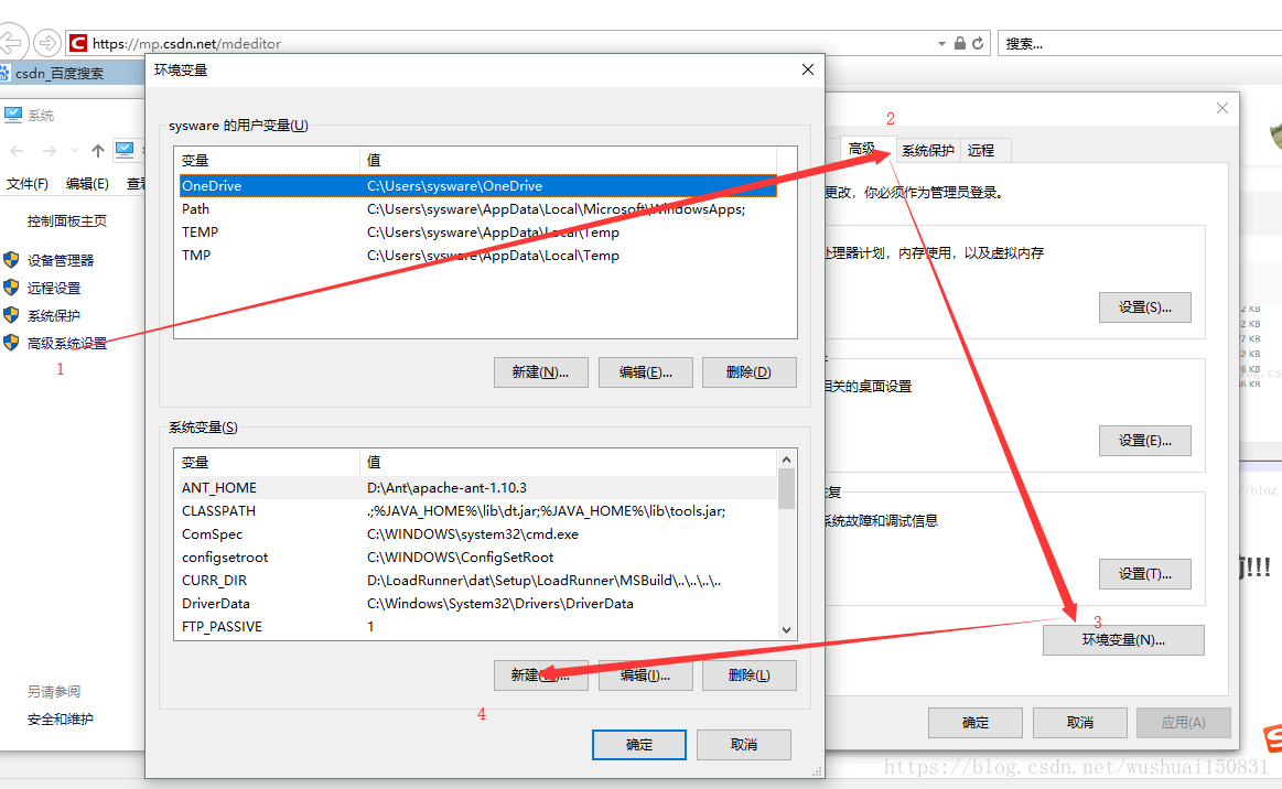右键我的电脑-属性-高级系统配置-高级-环境变量-新建