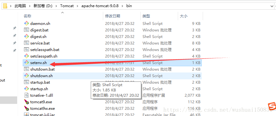 然后在Tomcat的bin目录下新添加setenv.sh,内容为: