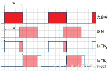 记光的速度为c,tp为光脉冲的持续时间, S0表示较早的快门收集的电荷, S1表示延迟的快门收集的电荷,那么距离d可以由如下公式计算: