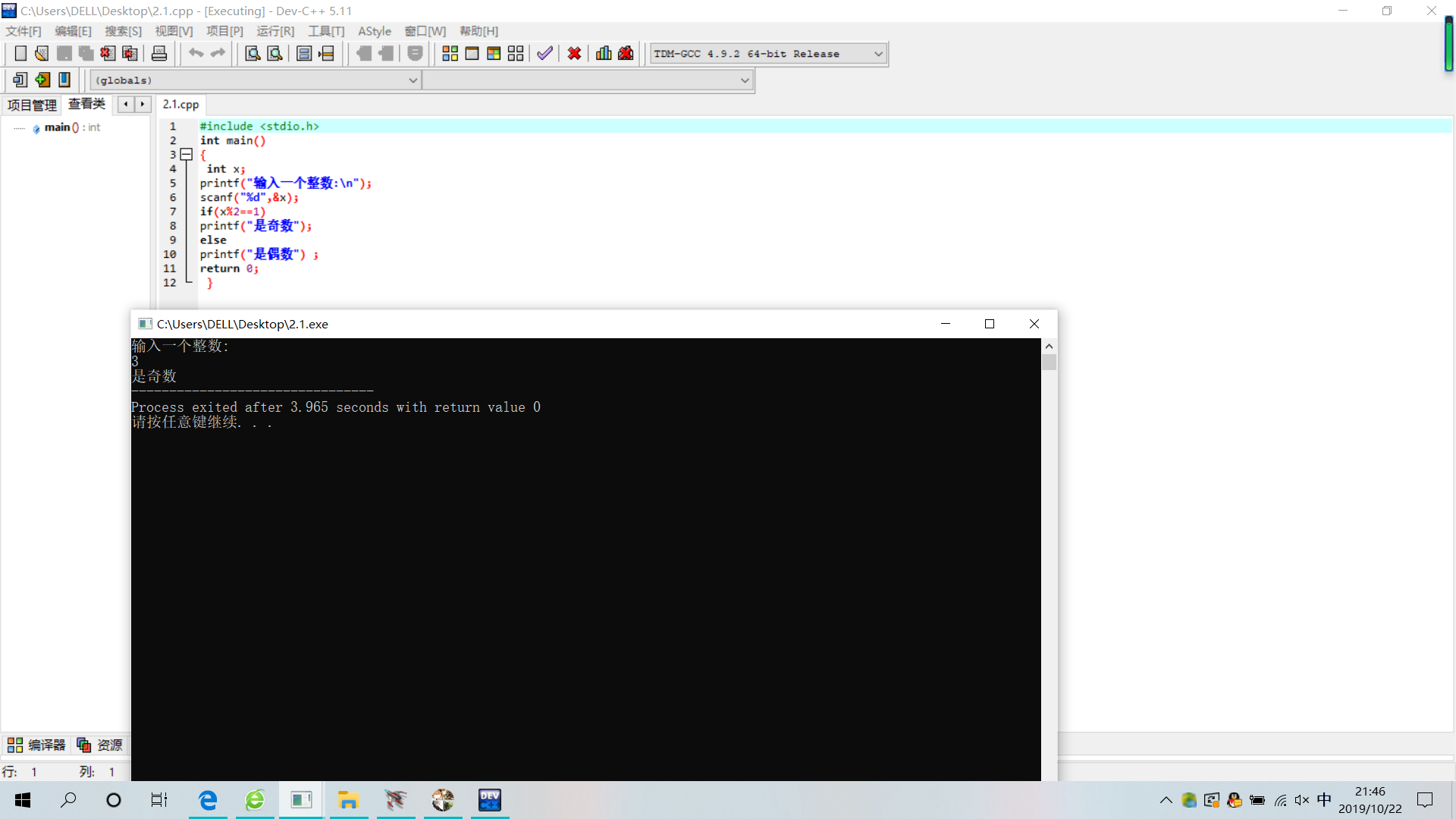 printf("是奇数");