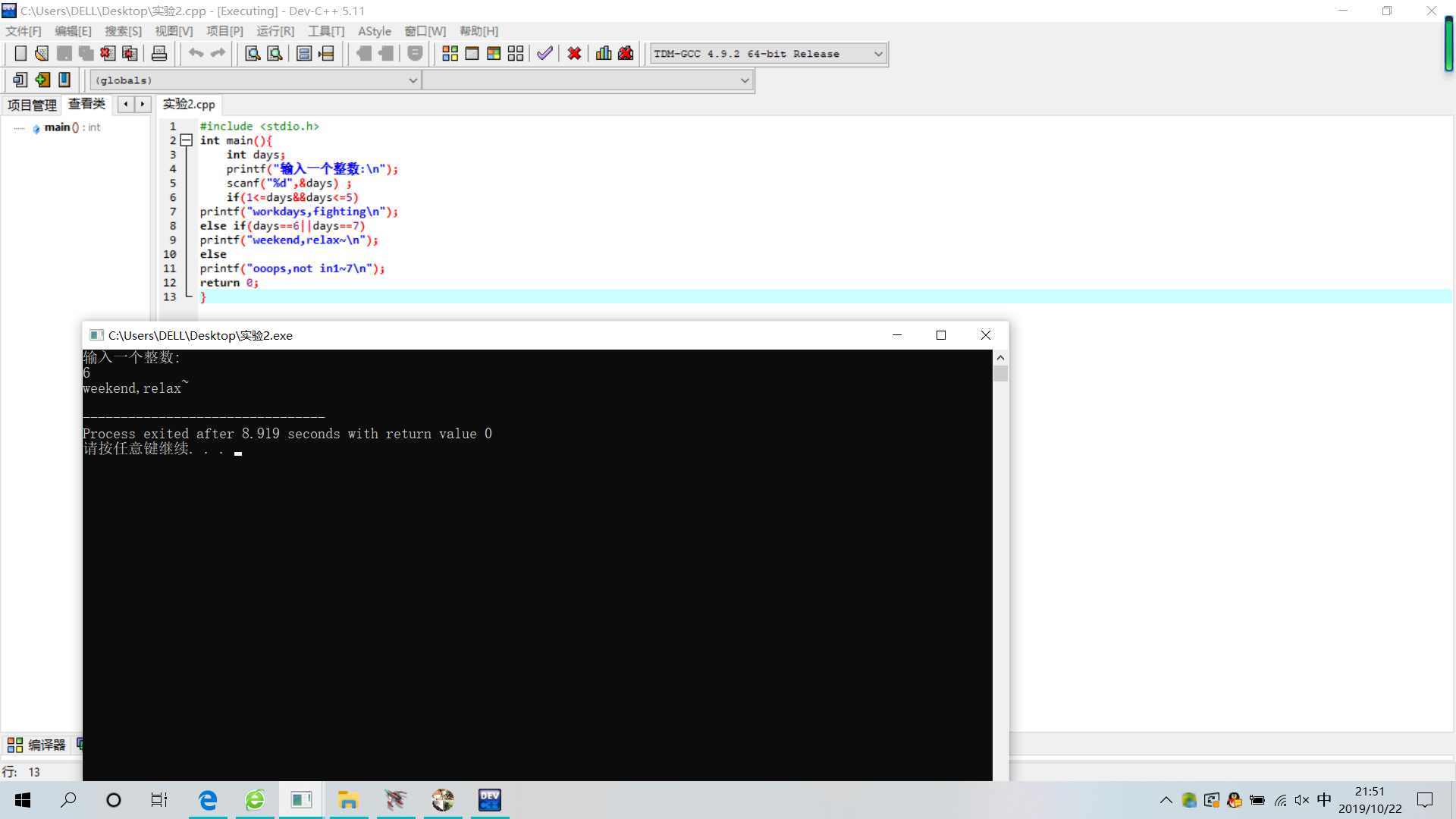 printf("weekend,relax~\n");