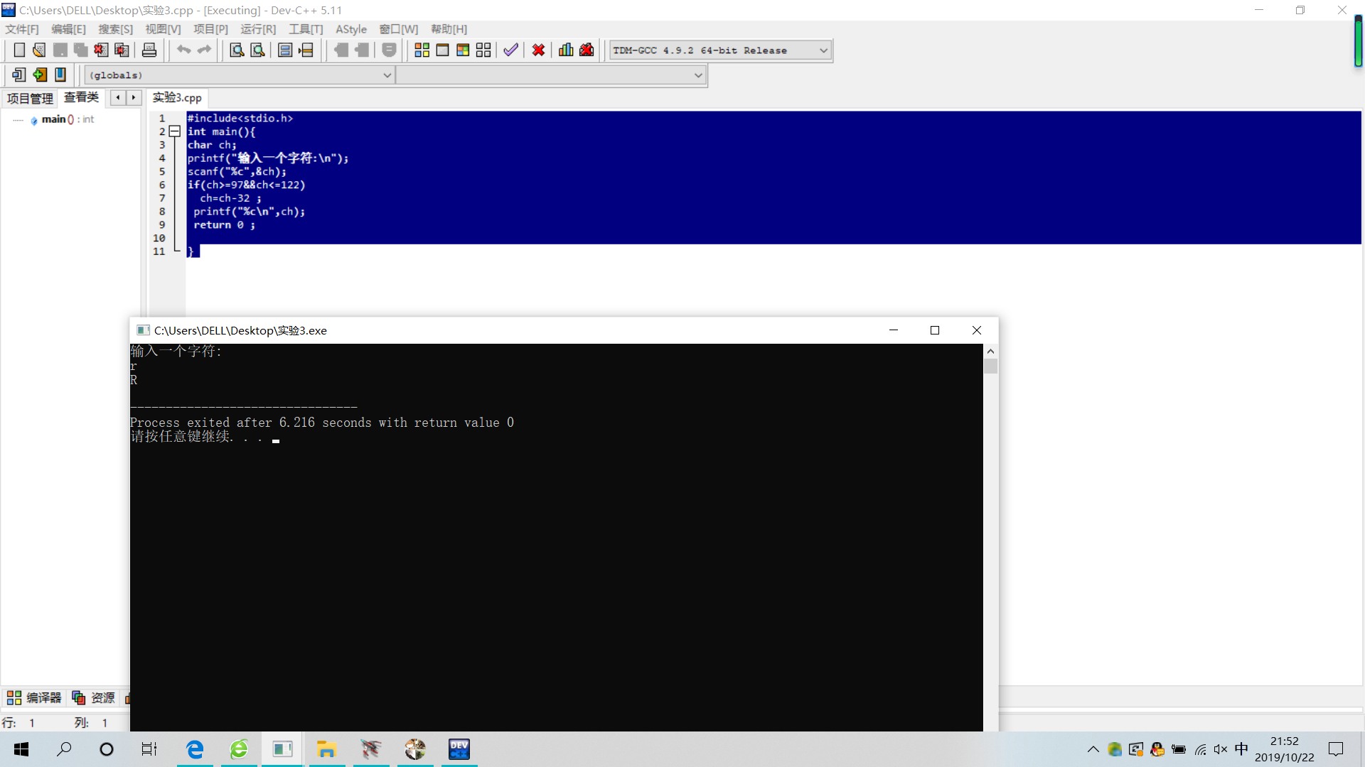 printf("%c\n",ch);