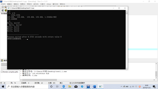 运行程序,观察行结果,对照每一行printf()中的格式控制符,理解其功能和用法