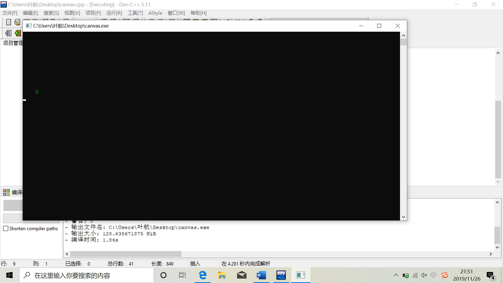 // 在屏幕画布指定坐标(x,y)处打印圆圈(圆圈用大写字符O代替) #include <stdio.h> #include <stdlib.h> #include <windows.h> // 函数声明 void printCircle(int x, int y); int main() { system("color 02"); // 设置屏幕为黑底绿色 printCircle(5, 10); // 调用函数,在坐标(5,10)打印圆圈 Sleep(5000); // 延时5000ms,即5s system("cls"); // 清除屏幕 printCircle(10, 5); // 调用函数,在坐标(10,5)打印圆圈 system("pause"); return 0; } // 函数定义 // 在屏幕坐标(x,y)处打印圆圈 void printCircle(int x, int y) { int line, col; // 打印y-1行空白行 for(line = 1; line <= y-1; line++) printf("\n"); // 在第y行打印x-1格空格 for(col = 1; col <= x-1; col++) printf(" "); // 双引号里有空格。这里是打印一个空格 // 在(x,y)坐标处答应圆圈,圆圈用大写字符O代替 printf("O"); printf("\n"); }