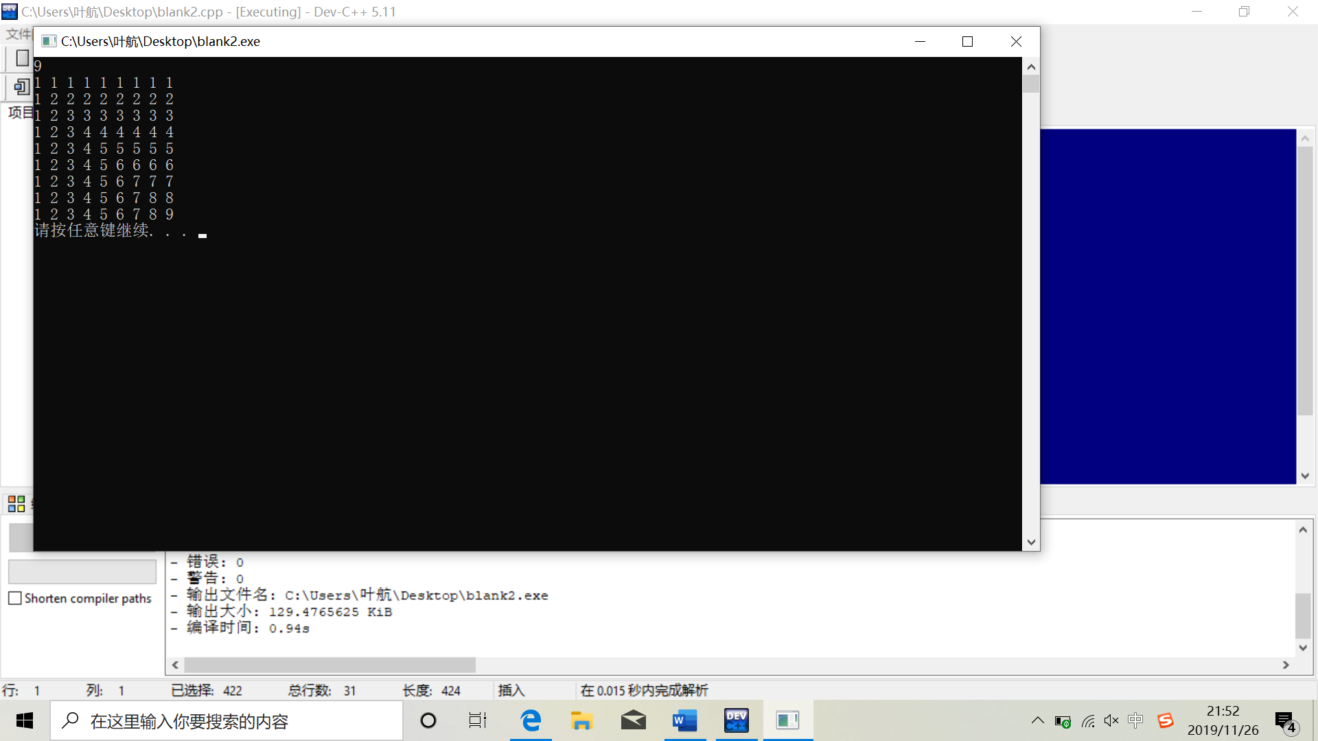 1.在多层循环时循环条件,以及初值要考虑好,否则会出现奇怪的结果。