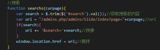 当我点击分页按钮时,我让这个跳转动作执行searchs(),在searchs()中执行跳转,这样就实现的搜索和分页的统一.