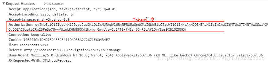 在使用JSON Web Token作为单点登录的验证媒介时,为保证安全性,建议将JWT的信息存放在HTTP的请求头中,并使用https对请求链接进行加密传输,效果如下图所示: