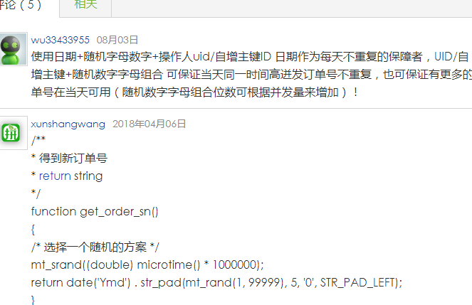 public function onlyosn() { @date_default_timezone_set("Asia/Shanghai"); $order_id_main = date('YmdHis') . rand(10000000, 99999999); //订单号码主体长度 $order_id_len = strlen($order_id_main); $order_id_sum = 0; for ($i = 0; $i < $order_id_len; $i++) { $order_id_sum += (int)(substr($order_id_main, $i, 1)); } //唯一订单号码(YYYYMMDDHHIISSNNNNNNNNCC) $osn = $order_id_main . str_pad((100 - $order_id_sum % 100) % 100, 2, '0', STR_PAD_LEFT); //生成唯一订单号 return $osn; }