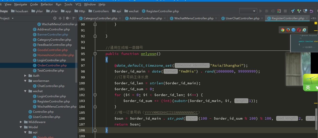 //通用生成唯一订单号 public function onlyosn() { @date_default_timezone_set("PRC"); $order_id_main = date('YmdHis') . rand(10000000, 99999999); //订单号码主体长度 $order_id_len = strlen($order_id_main); $order_id_sum = 0; for ($i = 0; $i < $order_id_len; $i++) { $order_id_sum += (int)(substr($order_id_main, $i, 1)); } //唯一订单号码(YYYYMMDDHHIISSNNNNNNNNCC) $osn = $order_id_main . str_pad((100 - $order_id_sum % 100) % 100, 2, '0', STR_PAD_LEFT); //生成唯一订单号 return $osn; }
