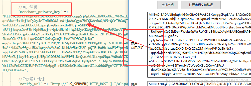 私钥merchant_private_key就把刚才生成的私钥粘贴进去就可以了。