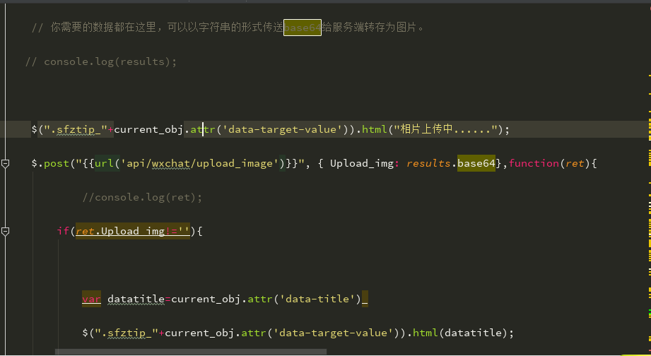 //base64图片上传 public function uploadCompressImg(Request $request) { $base64 = preg_replace("/\s/",'+',$request->input('img')); $img = base64_decode($base64); $disk = \Storage::disk('qiniu'); //使用七牛云上传 $img_name = date('Y/m/d-H:i:s-') . uniqid() . '.png'; $filename = $disk->put($img_name,$img);//上传 if(!$filename) { return $this->apiResponse(500, '上传失败'); } $img_url = $disk->getDriver()->downloadUrl($img_name); //获取下载链接 return $this->apiResponse(200, '上传成功',$img_url); }