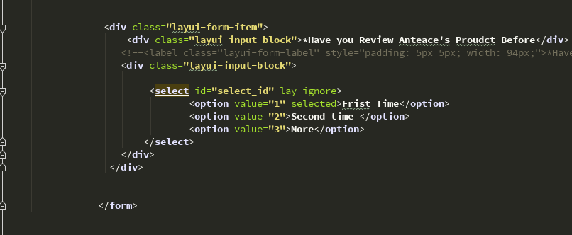 <option value="1" selected>Frist Time</option>