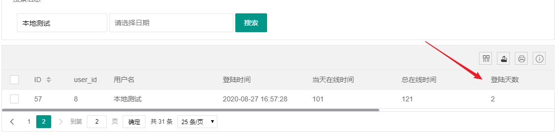 //登陆天数 $data['data'][$k]['sum_online_data'] = Db::name('log_jjcp_login') ->where('userid',$v['userid']) ->group("date_format(loginTime,'%m-%d-%Y')") ->count();