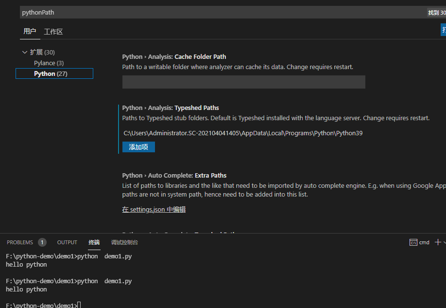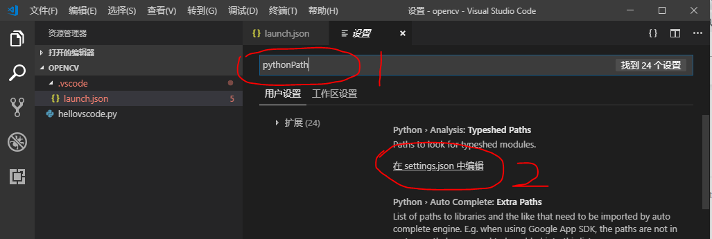 3>.在settings.json中,设置:“python.pythonPath”: “D:\develop\python\vscodeenv\Scripts\python”