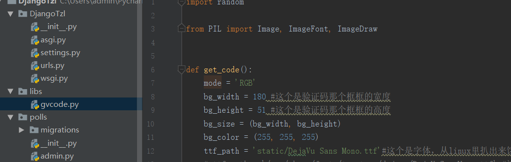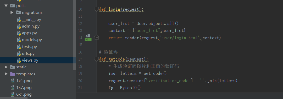 # 验证码 def getcode(request): # 生成验证码图片和正确的验证码 img, letters = get_code() request.session['verification_code'] = ''.join(letters) fp = BytesIO() img.save(fp, 'png') return HttpResponse(fp.getvalue(), content_type='image/png')