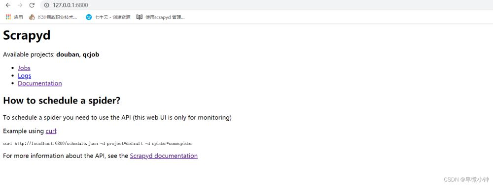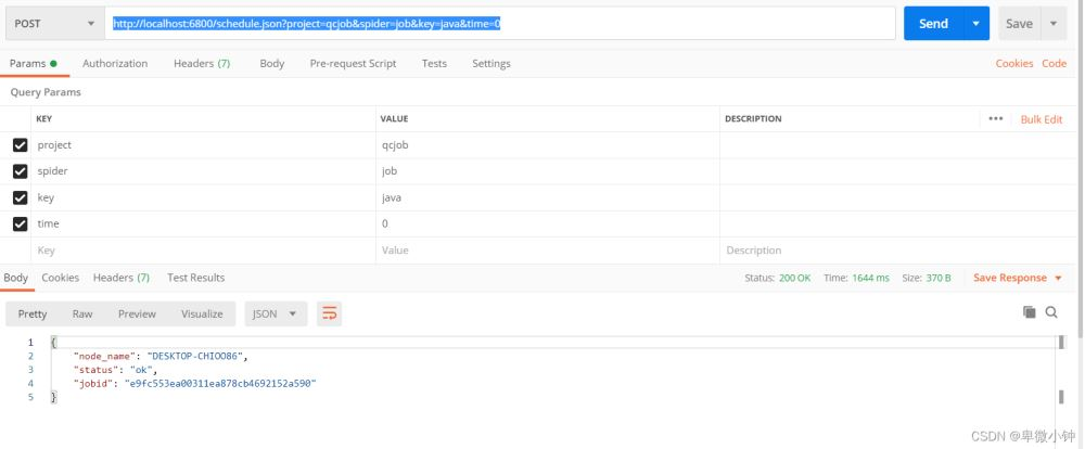 http://localhost:6800/schedule.json?project=qcjob&spider=job&key=java&time=0 #POST