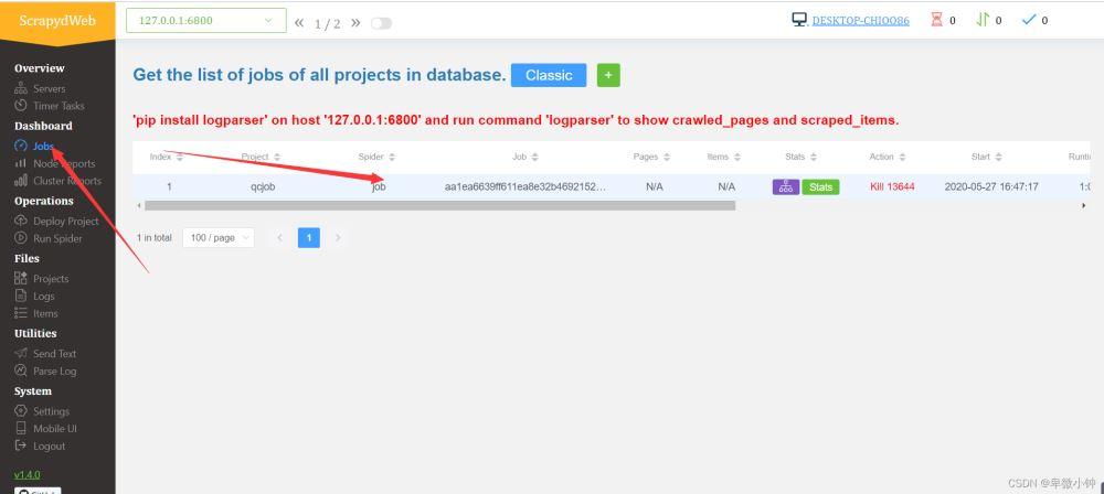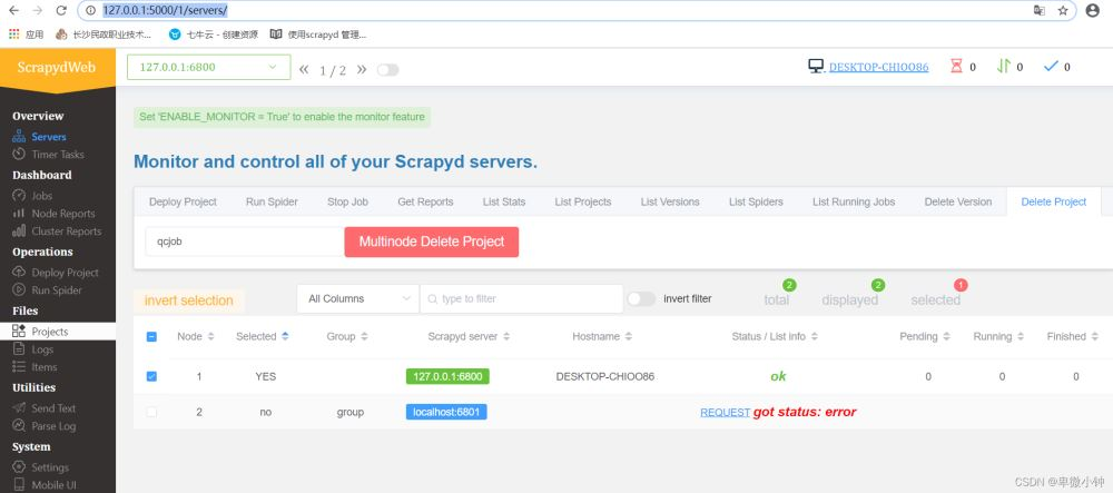 当然我们也可以从scrapydweb中查看和管理爬虫浏览器访问:http://127.0.0.1:5000/1/servers/