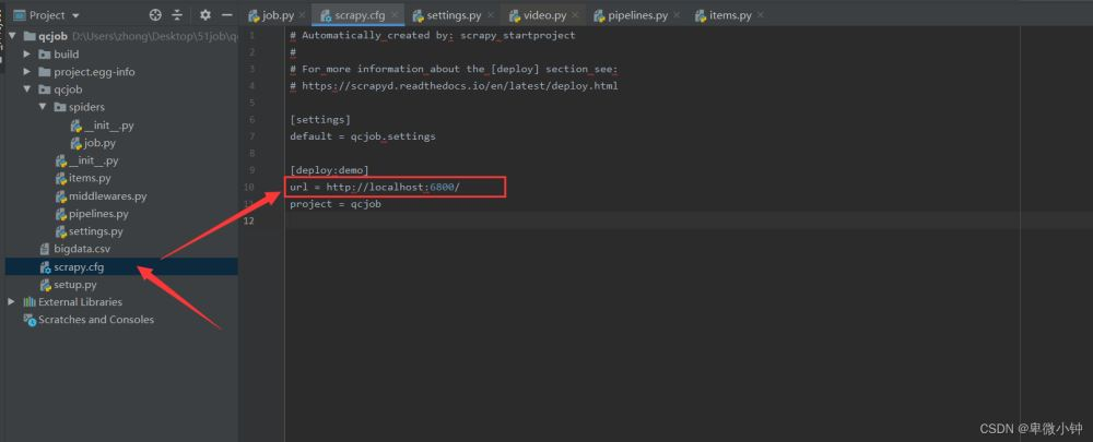 编辑scrapy.cfg,url是scrapyd服务器的位置,由于scrapyd在本地,所以是localhost。