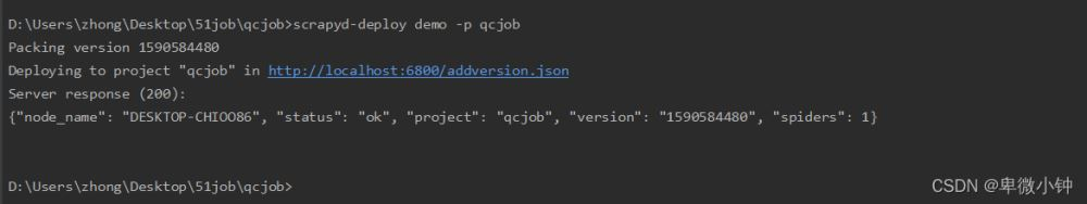 结构:scrapyd-deploy -p (scrapyd-deploy <目标> -p <项目>)