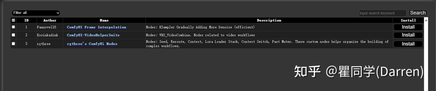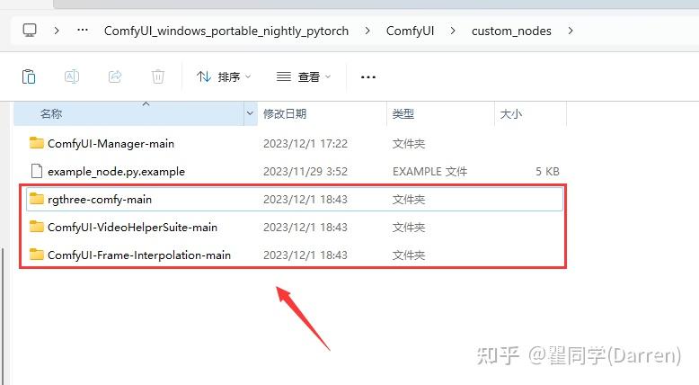 下载完成后有三个包解压至F:\ComfyUI\custom_nodes 文件夹下,然后重启ComfyUI。