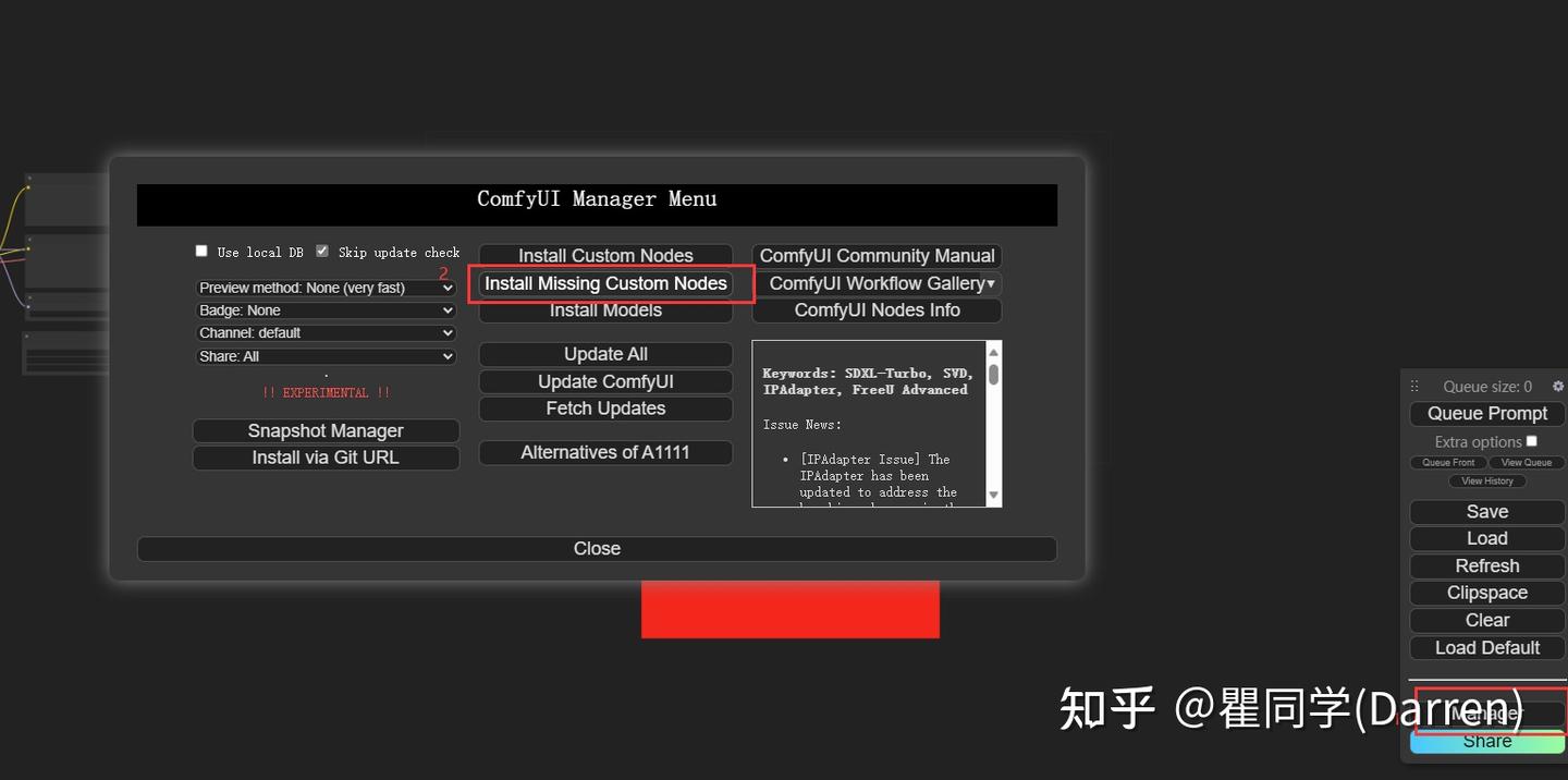 如下图逐个修复完成,修复完成后重启ComfyUI。