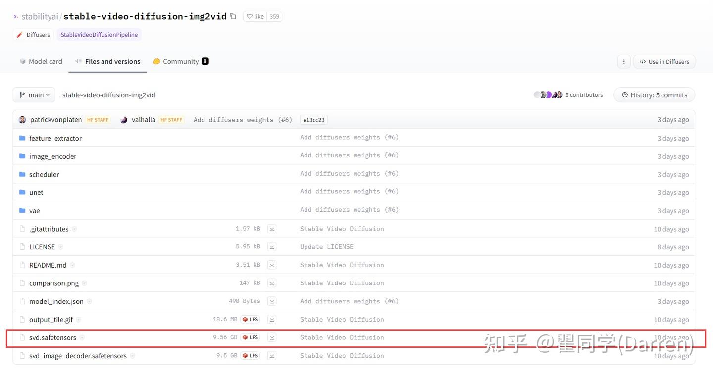 地址: https://huggingface.co/stabilityai/stable-video-diffusion-img2vid-xt/tree/main