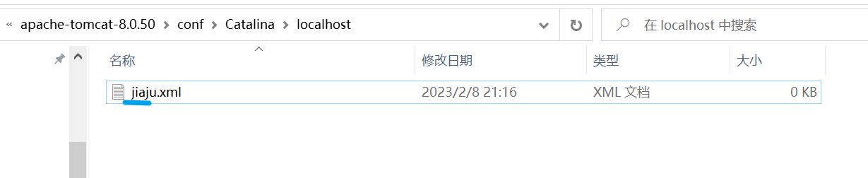 \conf\Catalina\localhost,创建一个与项目名称一样的文件——项目名.xml。例如,假如我有一个 web 项目名为“jiaju”:
